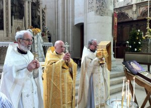 За Литургией молились паломники из Франции, Германии и Швейцарии. Причастие получили около 50 человек.