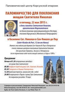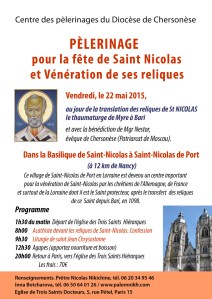 В пятницу 22 мая 2015 г., в день перенесения мощей святителя и чудотворца Николая из Мир Ликийских в Бар (1087), по благословению преосвященнейшего Нестора, епископа Корсунского (Московский Патриархат) в Базилике Свт. Николая в Сен-Николя де Пор состоится торжественная Литургия св. Иоанна Златоустого.