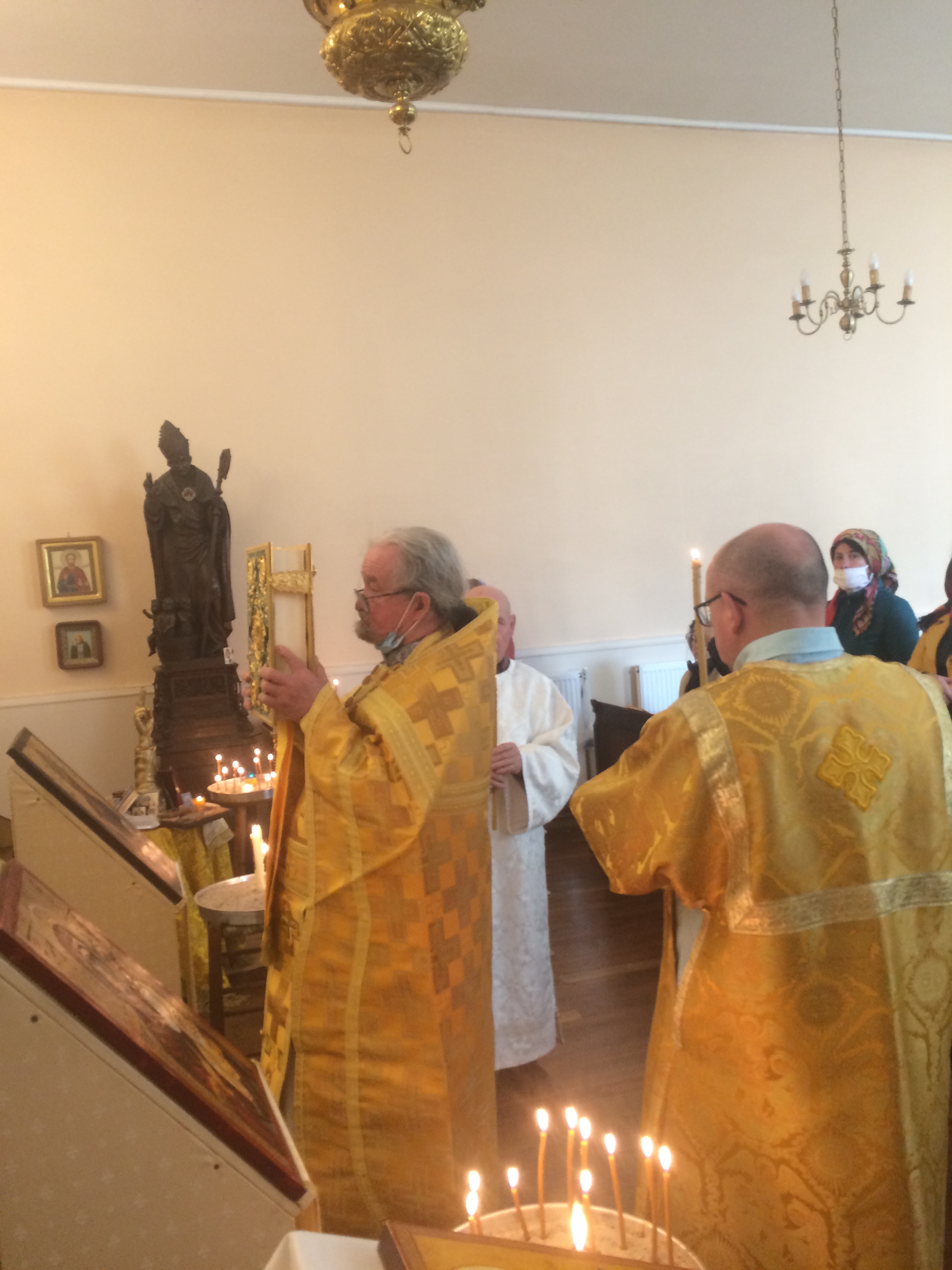 Возглавил Богослужение свящ. Николай Никишин, директор Паломнического Центра Корсунской епархии, настоятель подворья св. Николая в Сен-Николя-де-Пор. Участвовали, несмотря на ограничения, связанные с продолжающейся эпидемией, паломники из Страсбурга, Дижонa, Реймса, Германии, Парижа.