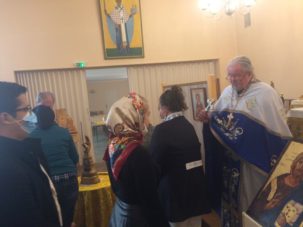 Возглавил богослужение свящ. Николай Никишин , директор Паломнического центра Корсунской епархии , настоятель подворья в Сен-Николя -де- Пор , сослужил диакон Михаил .