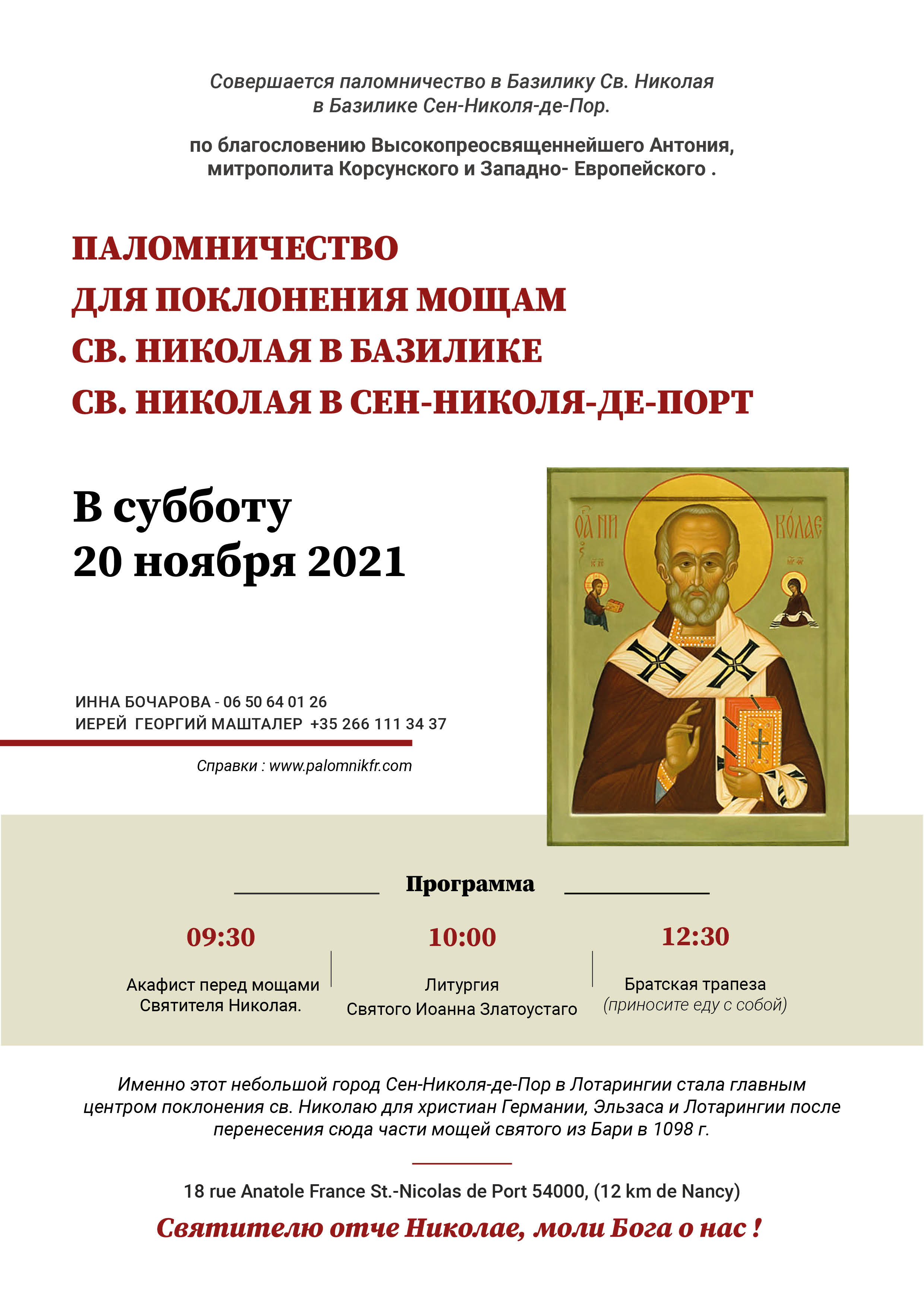 совершается паломничество в Базилику святителя Николая в местечке Сен-Николя-де-Пор.