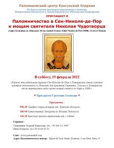 ПАЛОМНИЧЕСТВО ДЛЯ ПОКЛОНЕНИЯ МОЩАМ СВТ. НИКОЛАЯ ЧУДОТВОРЦА В СЕН-НИКОЛЯ-ДЕ-ПОР