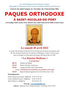 в Светлую Субботу, 30 апреля, состоится праздничная Пасхальная Литургия в Сен-Николя-де-Пор у мощей святителя Николая Чудотворца.