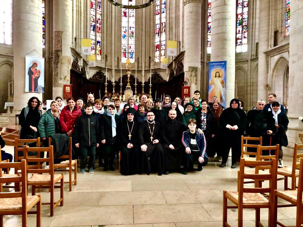 По благословению высокопреосвященнейшего архиепископа Нестора, Патриаршего Экзарха в Западной Европе, и по согласованию с местными церковными властями была отслужена Божественная Литургия. За Литургией присутствовали паломники не только из Франции, но также из Германии, из прихода Первоверховных апостолов Петра и Павла в Карлсруэ. Сослужило три священника. Пел прекрасный хор этого прихода под управлением Александра Бугакова.