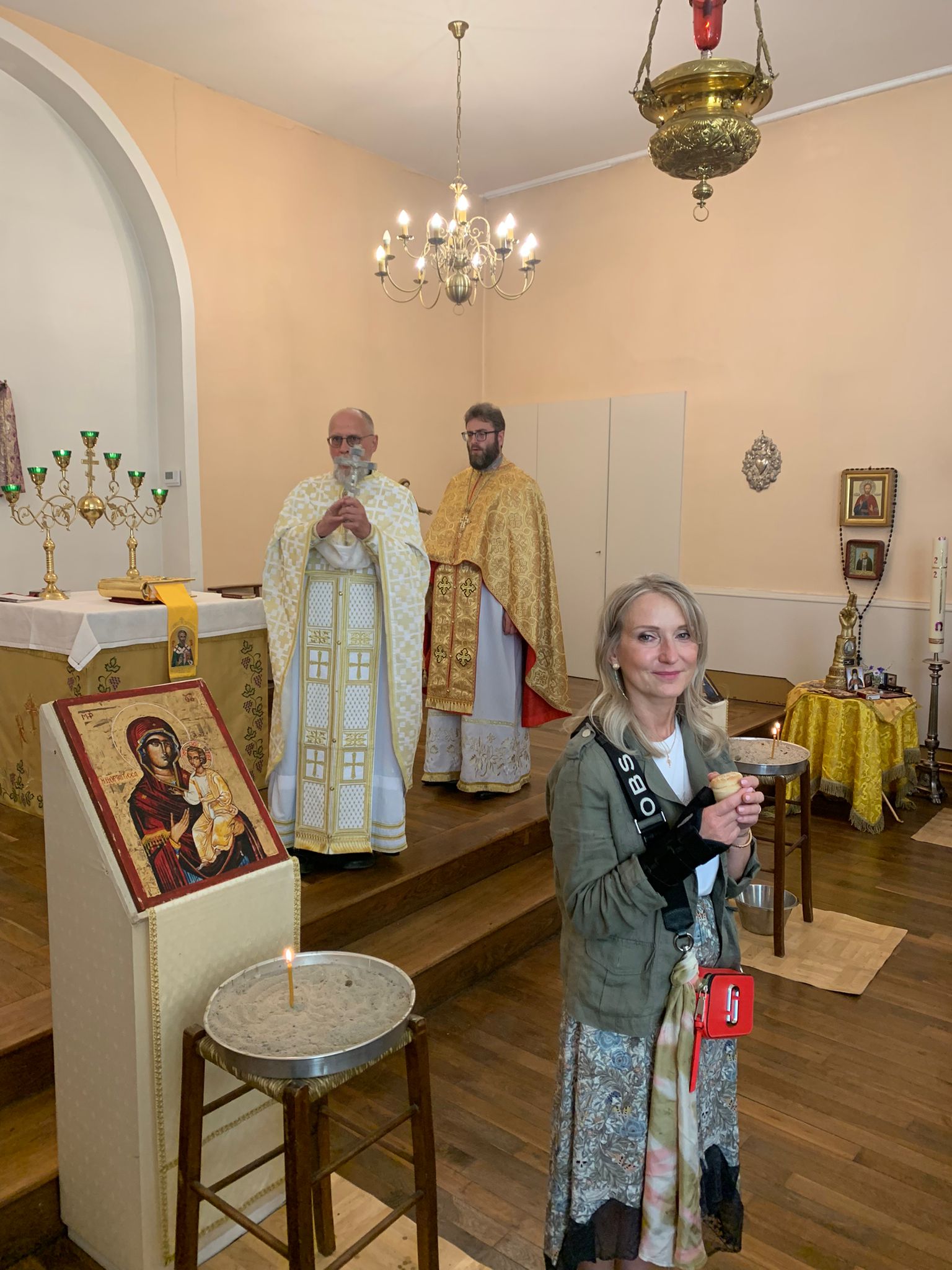 В конце Литургии священники и все прихожане поздравили с днём рождения многолетнюю прихожанку Елену Моер, жертвователя и благодетеля общины святителя Николая в Сен-Николя-де-Пор, спели ей многолетие.