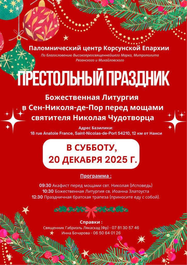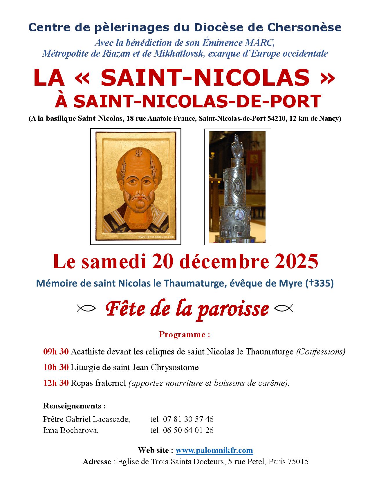 в субботу, 20 декабря, в Сен-Николя-де-Пор в Базилике св. Николая