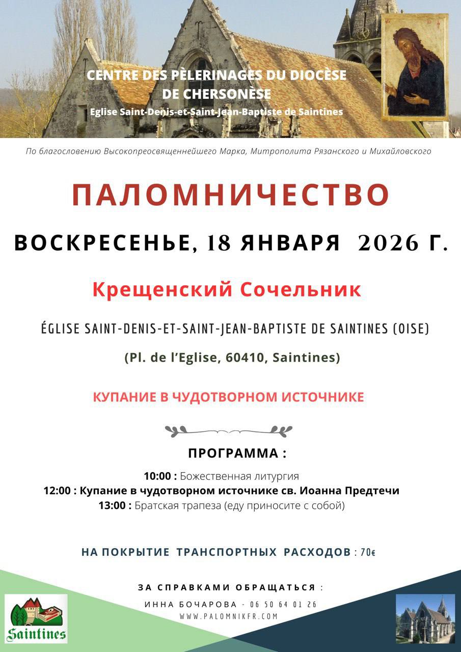 состоится паломничество в церковь св. Дионисия Ареопагита и св. Иоанна Предтечи в городе Сэнтин, где хранится часть мощей Крестителя Господня Иоанна.