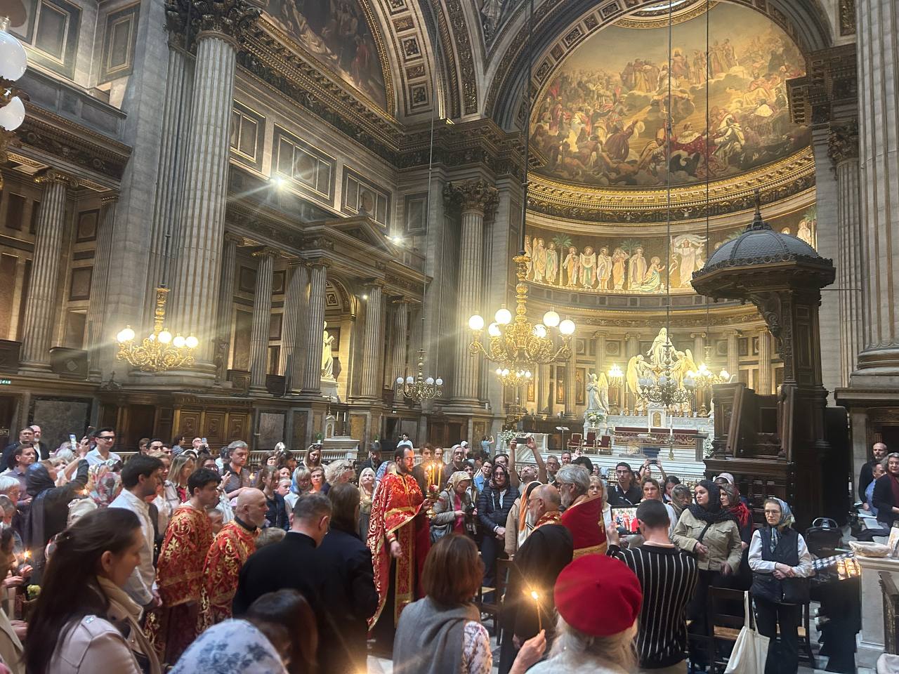 По благословению Его Высокопреосвященства Марка, Митрополита Корсунского и Западноевропейского, в Неделю жен-мироносиц, 26 апреля, вот уже в 24-й раз состоялся Пасхальный молебен у мощей святой равноапостольной Марии Магдалины в Церкви Ля Мадлен в Париже.