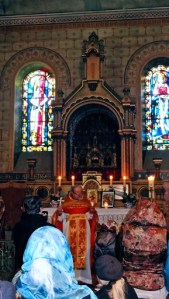 Литургию совершил иерей Николай Никишин, директор Паломнического центра Корсунской епархии. Участие в богослужении приняли около 50 паломников, среди которых были не только чада Русской Православной Церкви, но также и других поместных православных церквей: Сербской и Румынской.