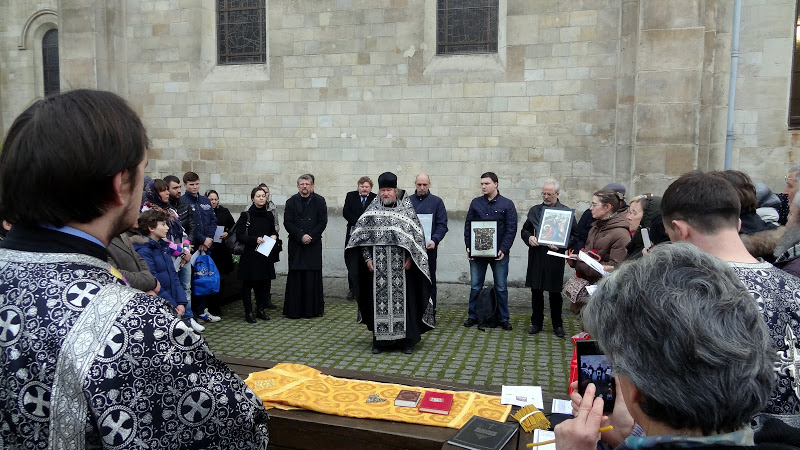 По окончании богослужения отец Николай обратился к верующим с пастырским словом, во время которого рассказал о Честной Ризе Господа нашего Иисуса Христа, хранящейся в Аржантёй, её исторической судьбе, а также о значении святыни для христианского мира. Отец Николай, в частности, отметил: «Сегодня на постсоветском пространстве неспокойно. И у нас у всех здесь, во Франции, болит душа о наших родных и друзьях, которые проживают в России, Украине, Белоруссии и других странах, которые находятся за тысячи километров от нас. И, кажется, мы ничем не можем им помочь. Но Господь Бог, братья и сестры, дал нам средство помощи – это вера и молитва, которым не подвластны расстояния. А здесь и сейчас в присутствии этой великой святыни мы имеем уникальную возможность вознести к Нему наши молитвенные прошения о помощи нашим близким, о даровании мира отечествам нашим, которые при должном усердии будут услышаны».