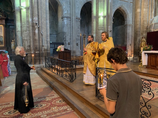 На каждую службу в городах Прованса, куда мы ездим в паломничества, присоединяются православные, проживающие в регионе. И в этот раз приехали с нами помолиться несколько православных семей из Тулона, Экс-ан-Прованса, приехали и православные бельгийцы, с которыми мы познакомились в прошлом паломничестве.