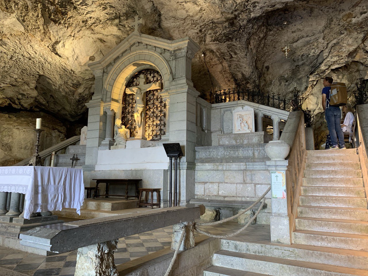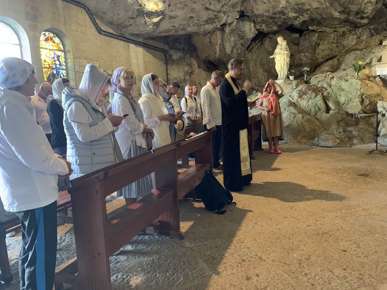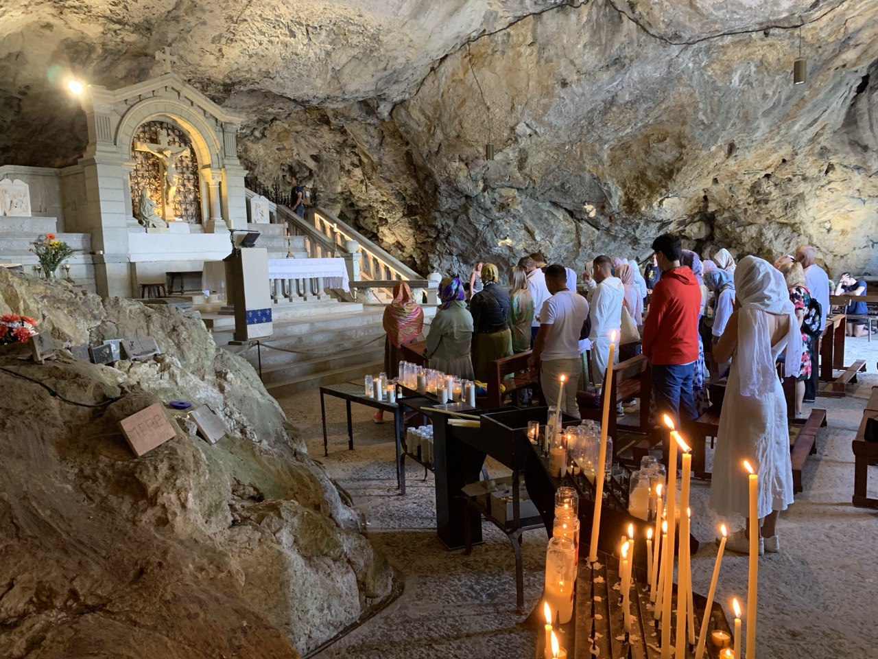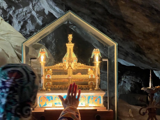 Две недели назад мы поднимались в Грот Марии Магдалины, расположенный в скалистой горной гряде в 25 км от места ее погребения, и там помолились и поклонились части ее святых мощей.
