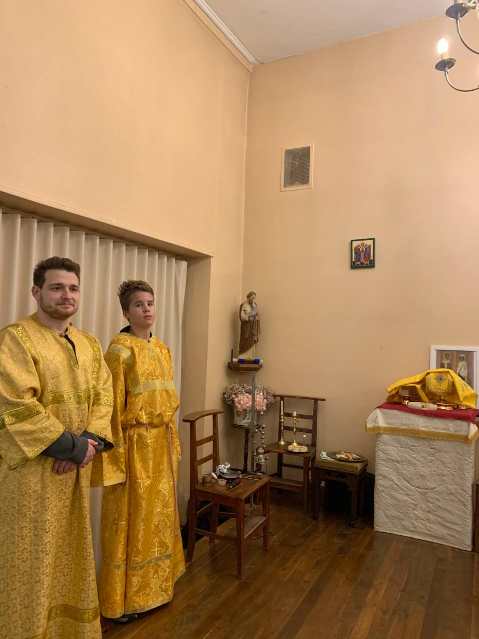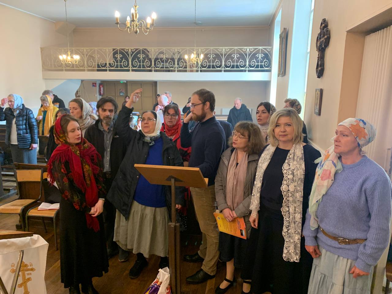 Конечно, с особой торжественностью звучало Слово Божие на церковнославянском, которое произносил диакон Михаил Комаров-Курлов. В алтаре также помогал алтарник Никита, приехавший из Метца. Блестяще пел сборный хор несмотря на то, что все певчие приехали из разных городов и не имели возможности для спевки. Руководила хором Инна Бочарова.