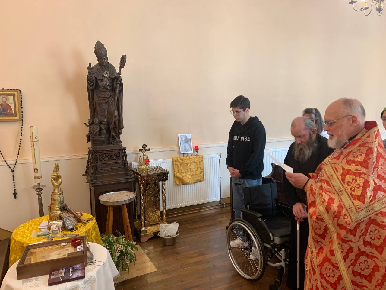 После традиционного Акафиста в Базилике в честь святителя реликварий с его мощами был перенесен в зимнюю часовню, где была отслужена Божественная Литургия, которую совершил отец Габриэль Лякаскад, клирик Всехскорбященского прихода в Париже. Пел сборный хор под руководством Инны Бочаровой. На богослужение собрались, как всегда, постоянные прихожане из близлежащих городов, а также из Бельфора, Метца, Парижа, Контраксевилля. В этот раз было особенно много паломников из православных приходов в Германии.