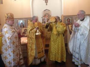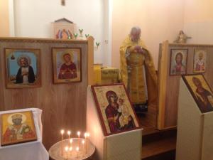 Возглавил богослужение священник Николай (Никишин), директор Паломнического центра Корсунской епархии и настоятель Никольского подворья в Сен-Николя -де-Порт .