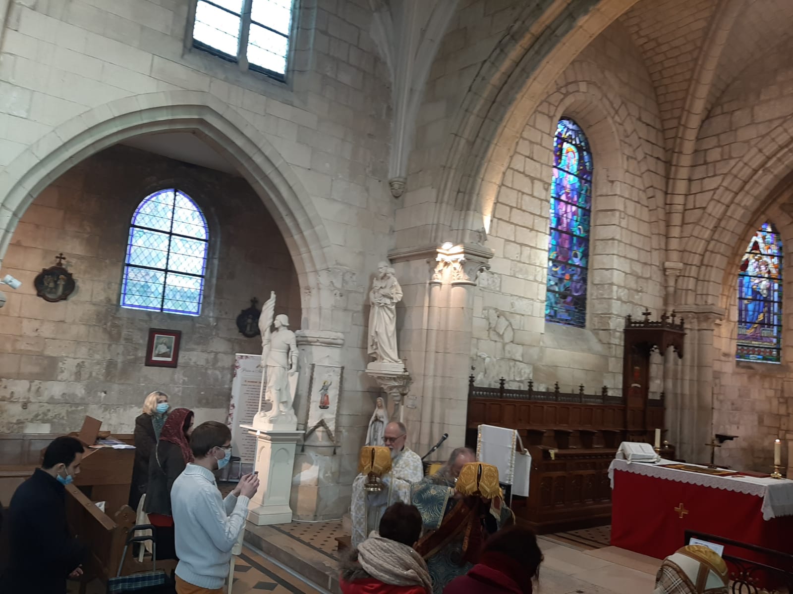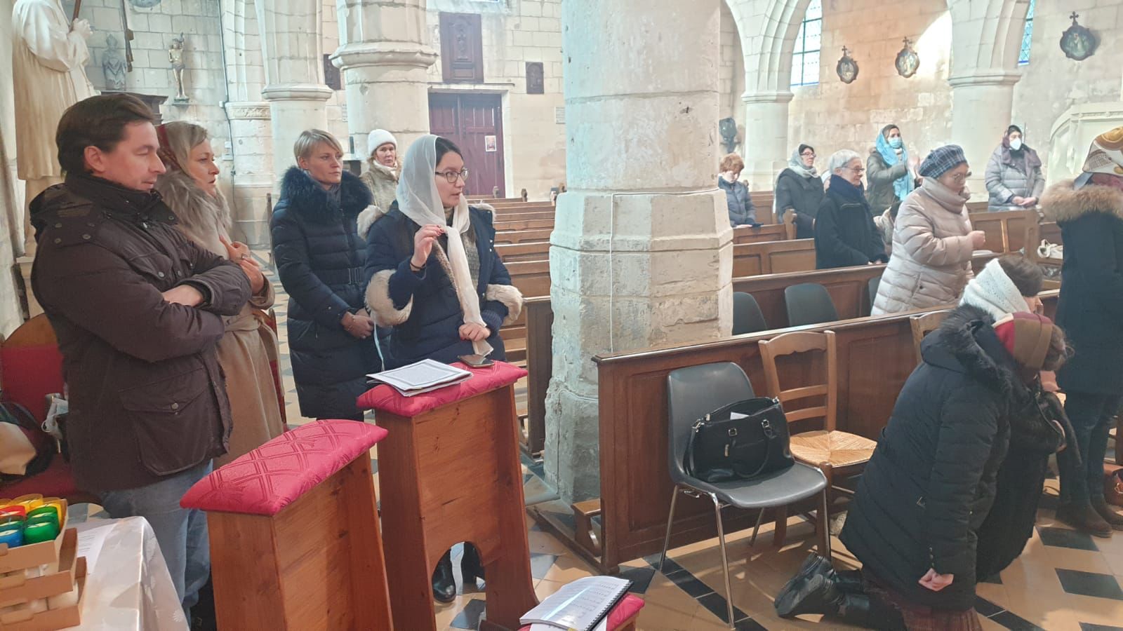 Samedi 25 février, un pèlerinage était organisé à Chiry-Ourscamp, commune de l’Oise qui s’honore d’abriter le crâne de sainte Anne, la mère de la Vierge Marie. Après le chant de l’acathiste aux saints Joachim et Anne et la lecture des heures, la liturgie a été célébrée en français et chantée en slavon.