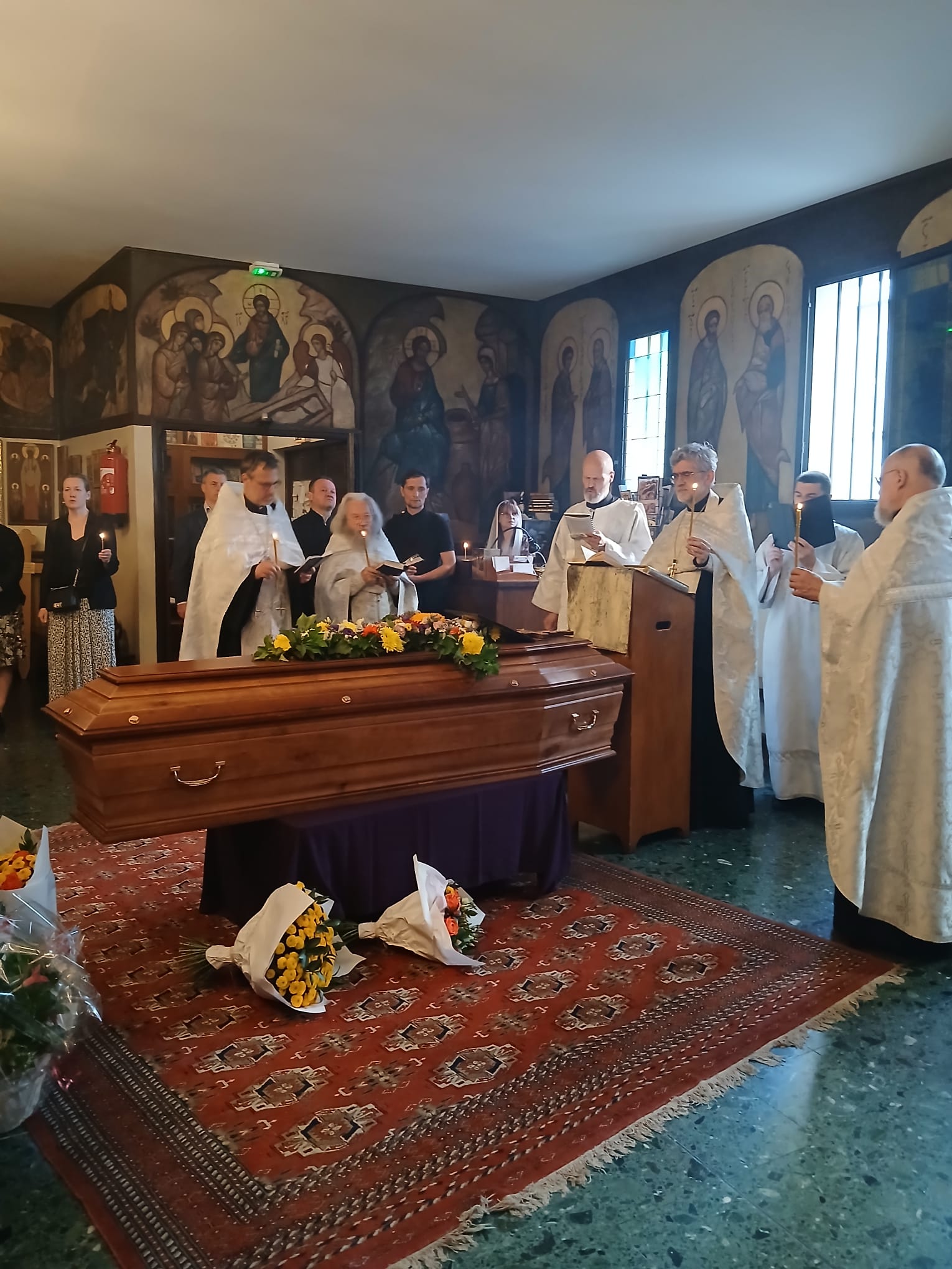 Батюшку отпевали четыре священника: отец Марк Андроников, клирик Трехсвятительского храма в Париже, иеромонах Варлаам из Киево-Печерской Лавры, настоятель Церкви Воскресения Христова в Медоне протоиерей Михаил Гудков, священник Габриэль Лякаскад из парижского прихода в честь иконы «Всех скорбящих Радость», а также диакон Бертран Лежандр.