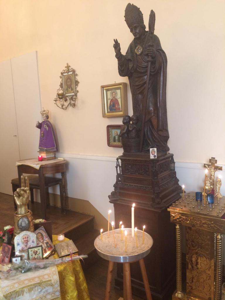 В субботу 24 октября 2020 г. состоялась Божественная Литургия в базилике св. Николая в Сен-Никола-де-Пор (15 км от г. Нанси) перед мощами этого великого угодника Божия. Одно из чудес сопровождает нас всю жизнь. Это обычай дарить подарки детям, которые до Лютера дарили именно в день памяти св. Николая, подражая его доброте и щедрости. А в безбожное время придумали « деда Мороза », который создал множество неразрешённых психологических проблем.