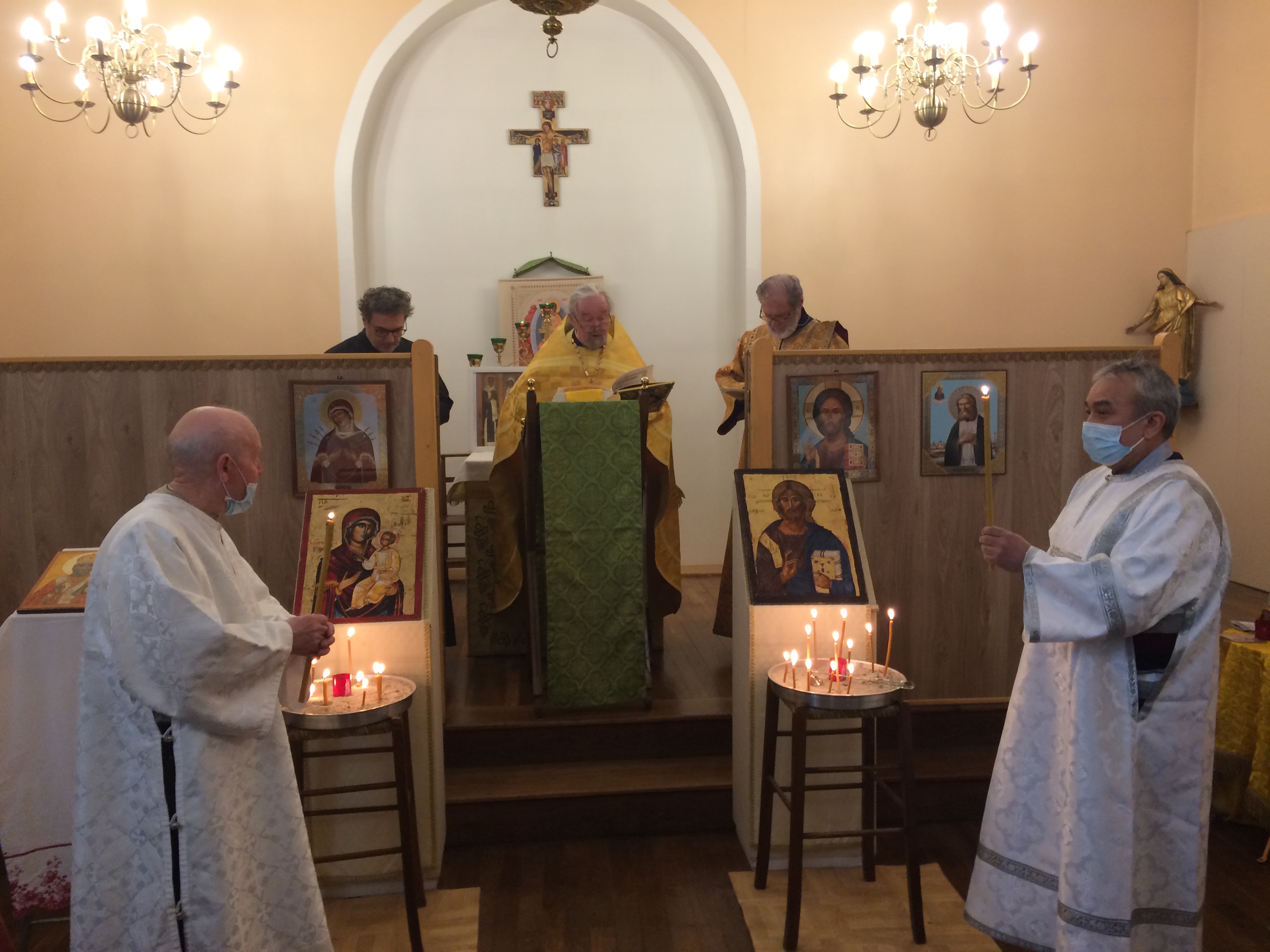 26 сентября 2020 состоялась Божественная литургия у мощей Св. Равноапостольной царицы Елены в храме Сен Ле Сен Жиль(Св. Лупа, Св. Егидия), где каждую вторую субботу месяца служится Божественна Литургия.