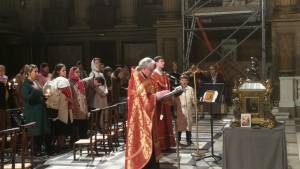 В субботу 3 августа 2019 года в Базилике св. Марии Магдалины в Сен-Максимине (департамент Вар) по благословению Высокопреосвященнейшего Антония, митрополита Корсунского и Западно-Европейского, и с согласия аббата Флориана, настоятеля храма, была отслужена Божественная Литургия св. Иоанна Златоустого перед мощами святой равноапостольной Марии Магдалины.