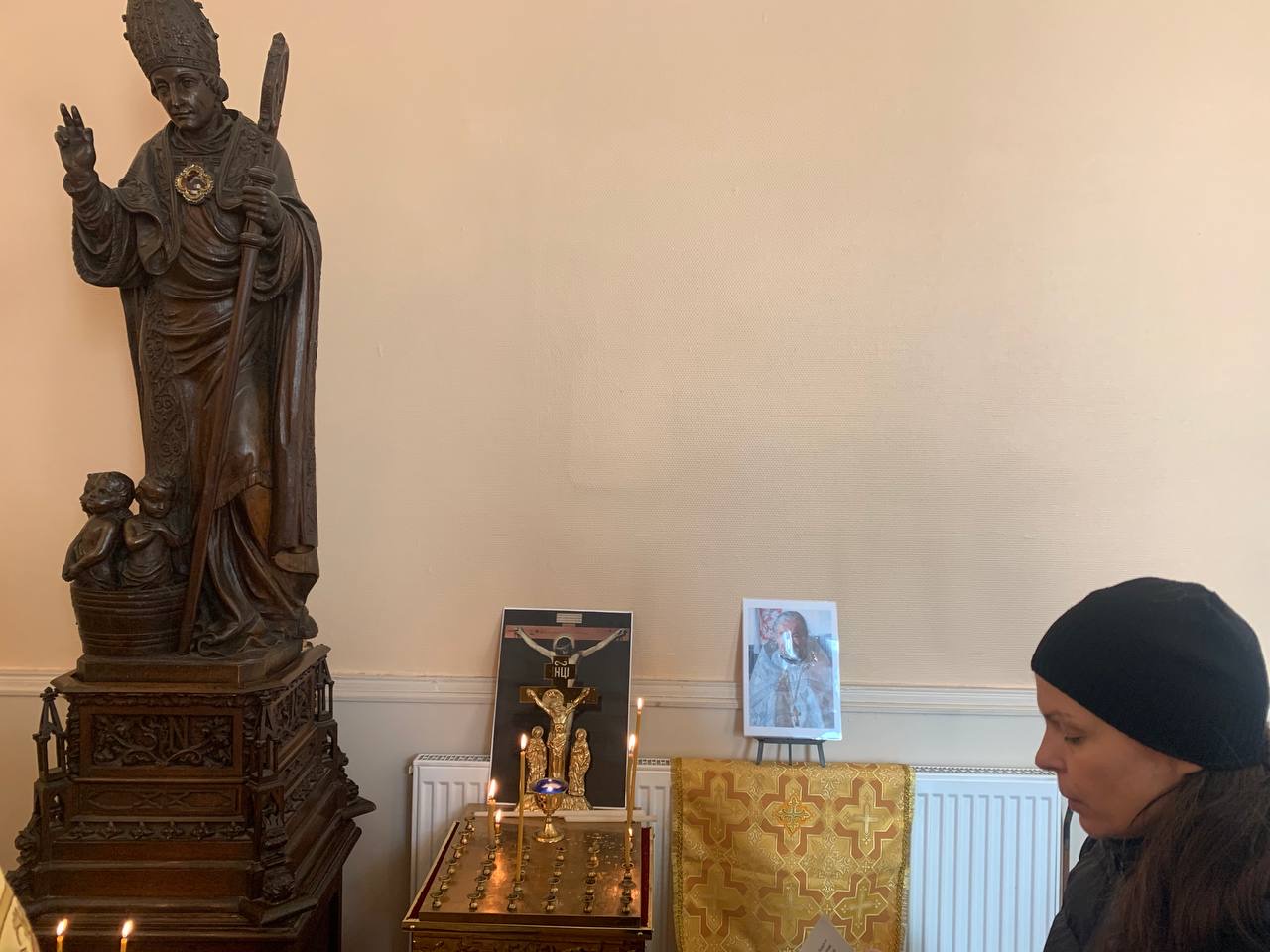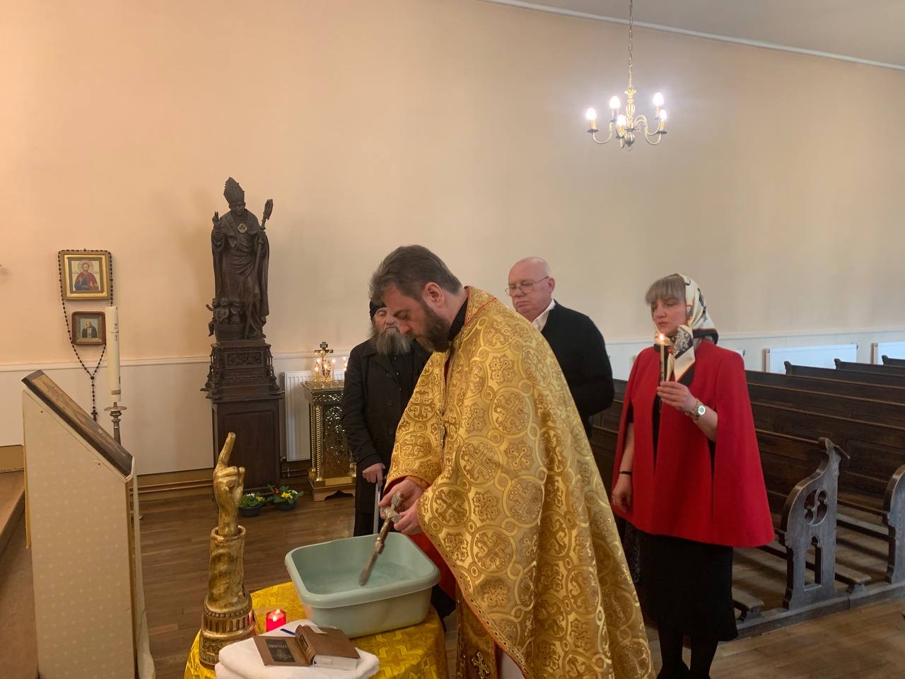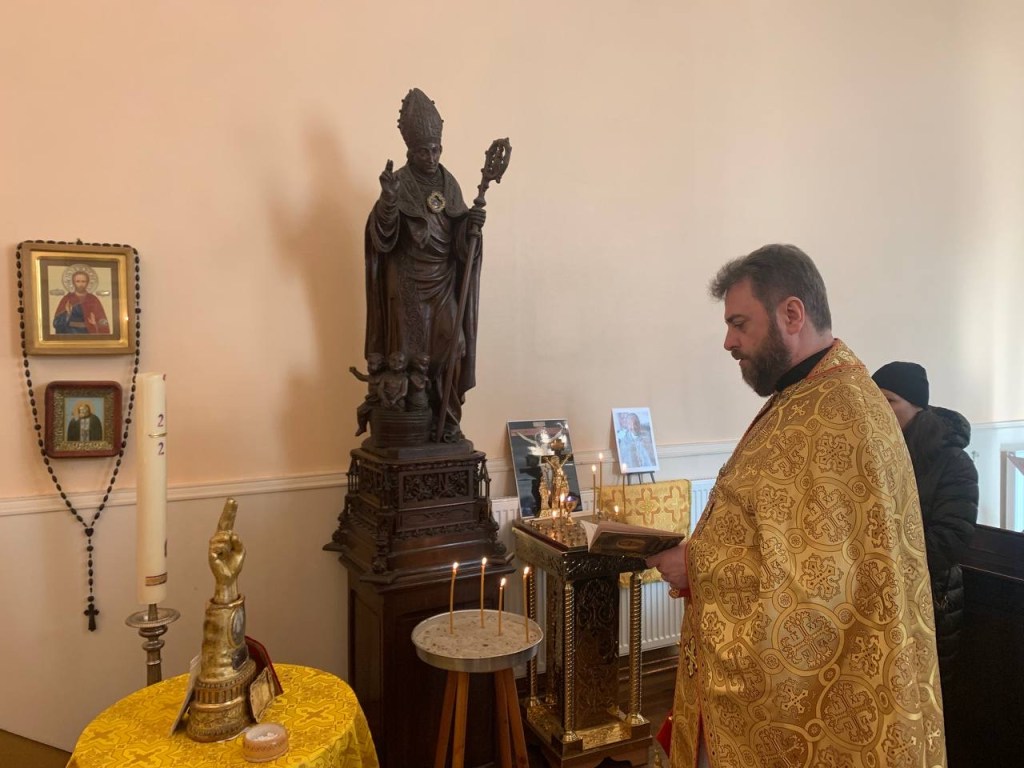 После Акафиста Пресвятой Богородице, который традиционно читается в этот праздник Похвалы Пресвятой Богородице, была отслужена Божественная Литургия, а затем также Панихида по усопшему отцу Николаю Никишину, стараниями которого и был создан этот приход, к третьей годовщине его кончины.