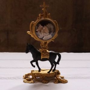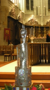 В местечке Аржантей в 15 км от Парижа находится Риза Господня – нешвенный хитон Иисуса Христа, вытканный руками Божией Матери. В нем Спаситель был приведен на распятие, о нем метали жребий римские солдаты. В VIII веке император Карл Великий подарил его своей дочери – игуменье монастыря в Аржантее. Это – величайшая святыня! Только одна частица этой Ризы Господней, подаренная 400 лет назад персидским шахом патриарху Филарету, отцу всенародно избранного после Смуты царя Михаила Романова, явилась благословением новой династии Романовых.