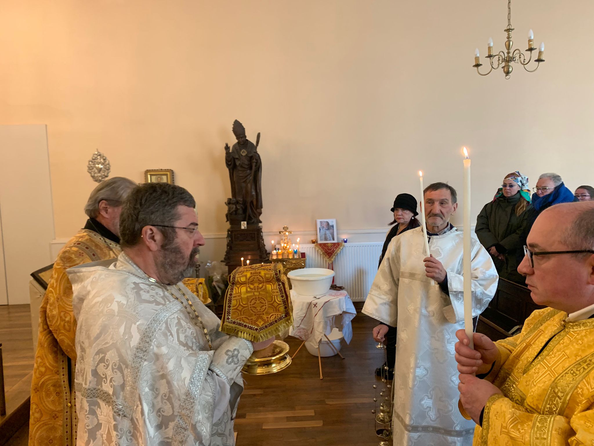В субботу, 18 января, состоялось первое в этом году богослужение в Сен-Николя-де-Пор у мощей святителя Николая Чудотворца. Оно совпало с Праздником Богоявления – Крещения Господня. Божественную Литургию отслужил отец Габриэль Лякаскад. Ему, как всегда, помогал диакон Михаил Комаров-Курлов. Хором руководила Инна Бочарова. Также было совершено Великое освящение воды. Приехали как постоянные прихожане, так и паломники из других городов: из Нанси, Страсбурга, Метца, Парижа, Люксембурга. После богослужения все собрались, как всегда, за общей трапезой, чтобы отпраздновать Крещение Господне, а также все прошедшие праздники – Новый год и Рождество Христово.