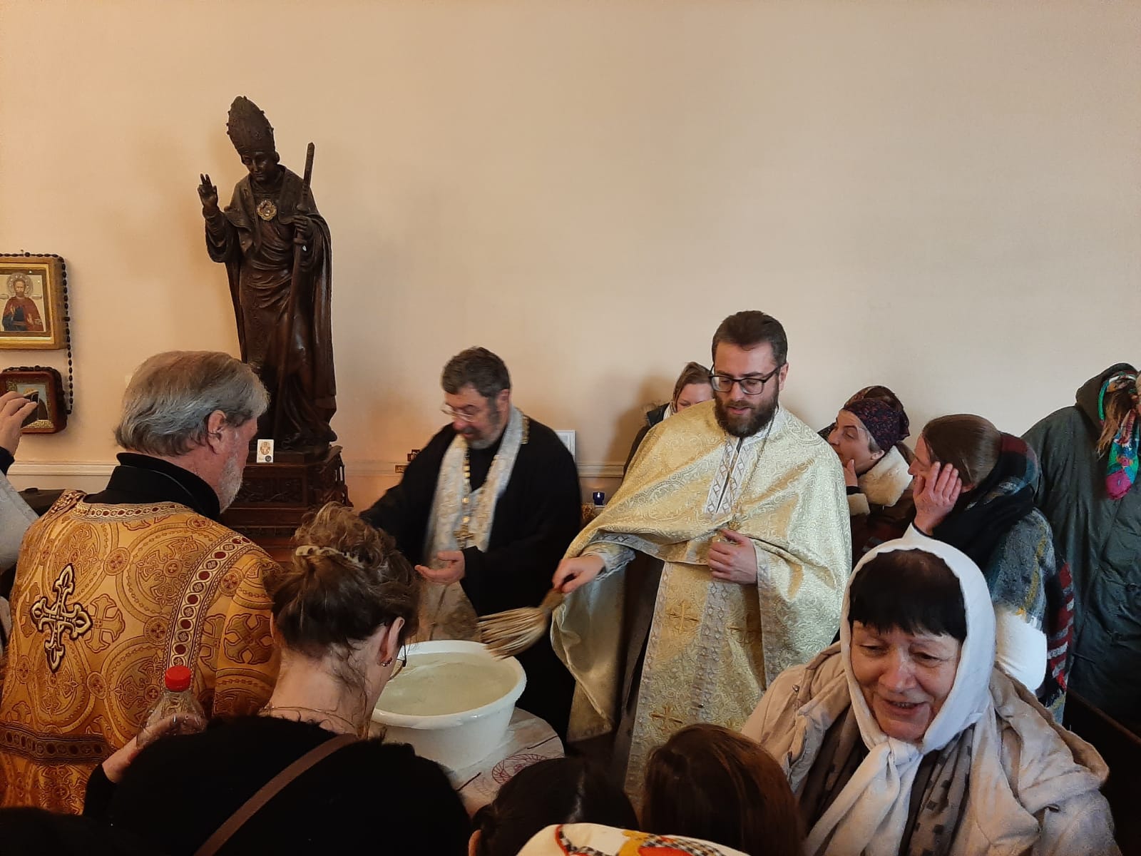 После Литургии было совершено Великое освящение воды, так как богослужение пришлось на дни празднования Святого Богоявления – Крещения Господня, одного из самых любимых и ожидаемых Двунадесятых праздников. В проповеди отец Георгий остановился на словах из Деяний Апостолов, чтимых в праздник Богоявления, о том, какое значение имеет святая вода и Крещение в нашей жизни.