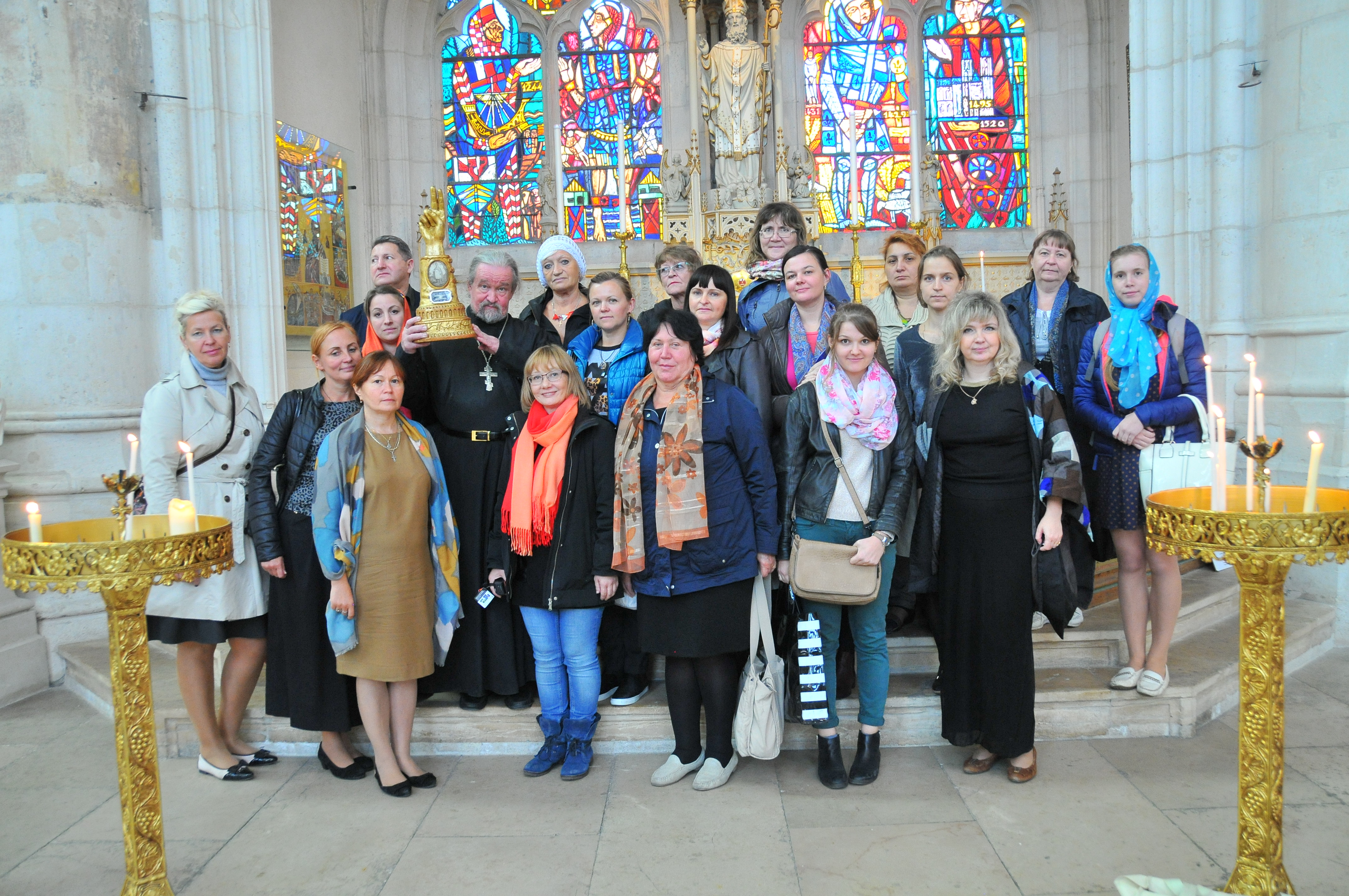В 8ч. утра православные паломники из Парижа, присоединились к паломникам из Италии из храма св. Екатерины (Рим), из Страсбурга, из Нанси и Тулузы. Мы стали одним из первых (ранних), кто приехал поклониться этой великой святыни, поэтому нам позволили помолиться дольше перед св. Плащаницей. Это было осознано, когда выйдя в 9 часов из собора святого Иоанна Крестителя, мы увидели громадную очередь паломников.