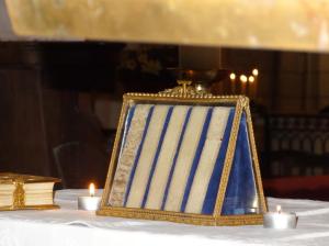 Настоятель храма аббат Бенуа Мену встретил паломников и помог им обустроить место для поклонения, он отметил, что это уже третье паломничество русских православных ко св. Поясу и оно вызвало резонанс в католической общине. В своём слове перед молебном священник Николай Никишин, возглавивший паломничество обосновал подлинность святыни.