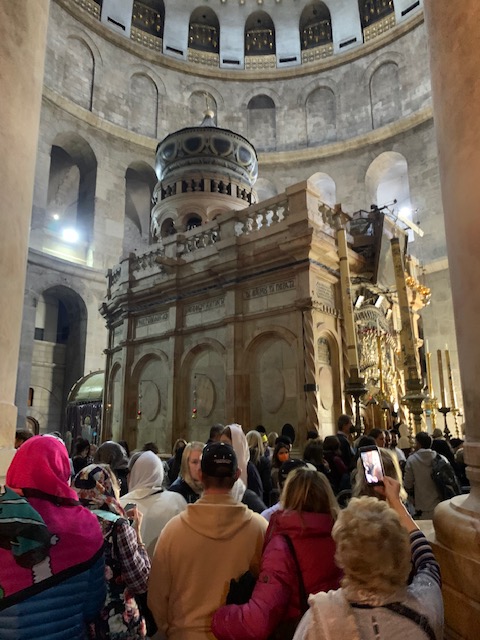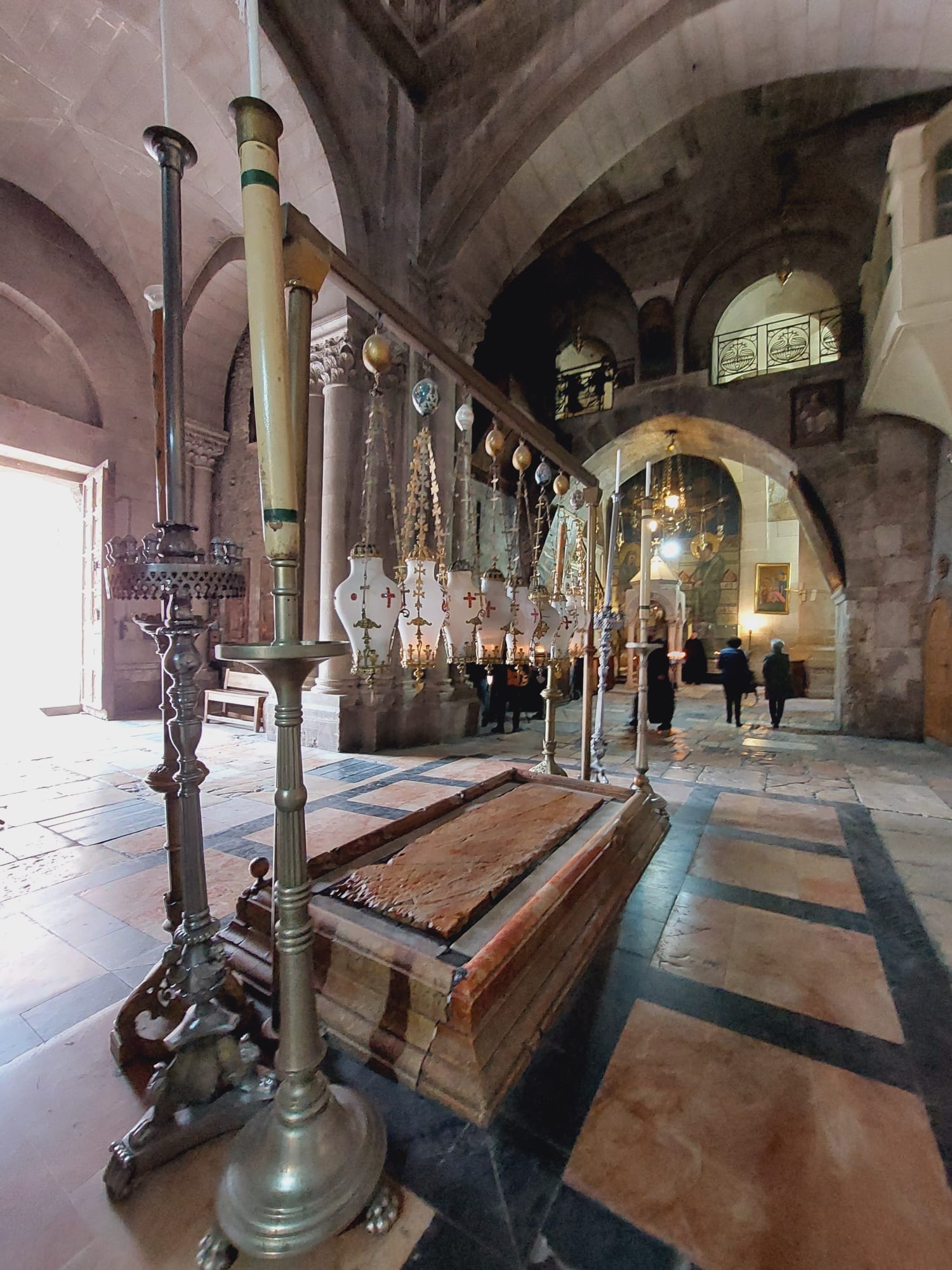 Три главные богослужения нашего паломничества: ночная Литургия в Храме Гроба Господня, утренняя Литургия в Пещере Рождества Христова, и в последний день – у Гробницы Пресвятой Богородицы…